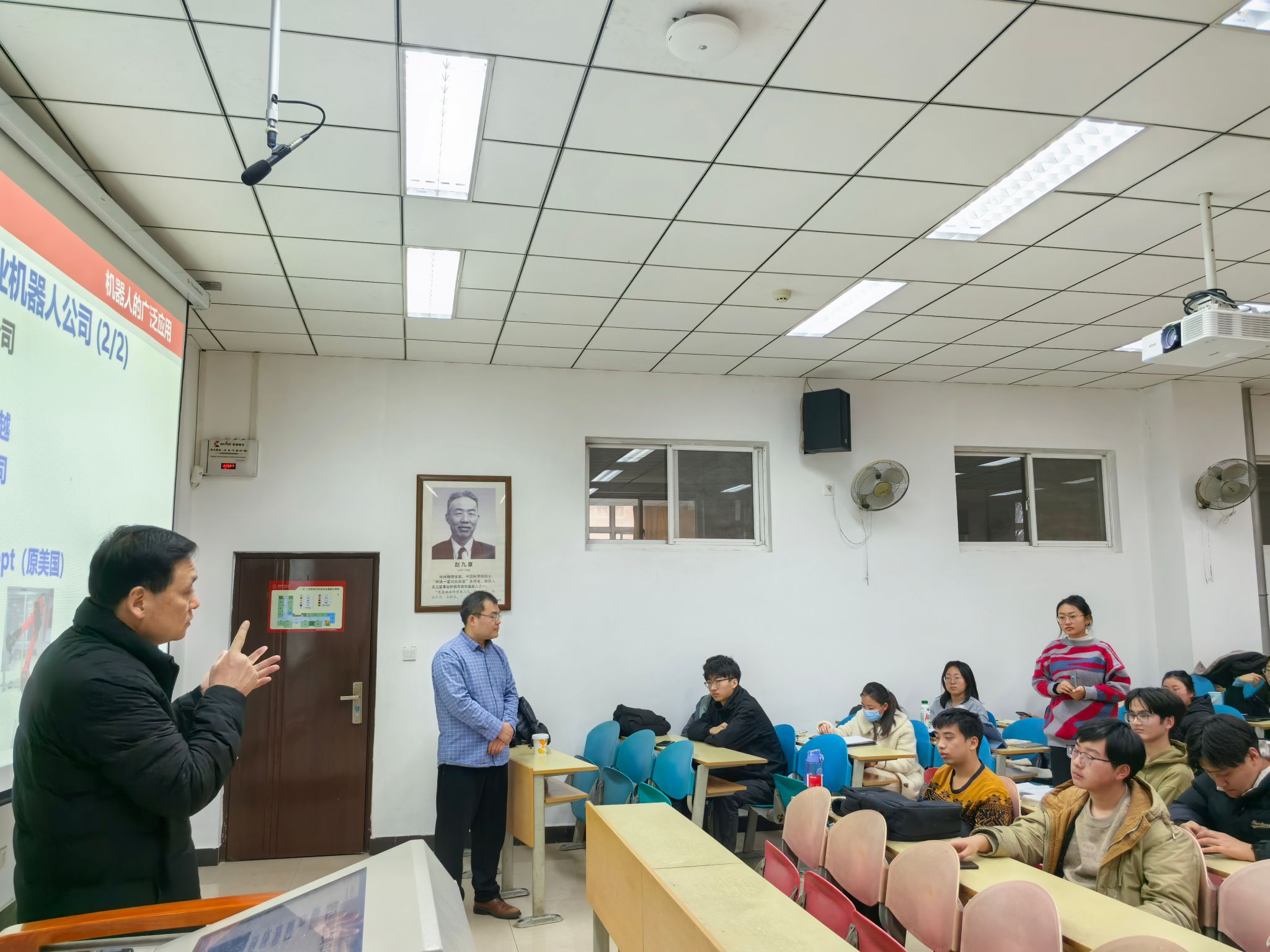 报告最后,訾斌教授与同学们进行了深入的交流,就机器人技术应用、发展前景等方面的问题与同学们进行了深入探讨。本次报告内容翔实、富有启发性,极大地拓宽了同学们的视野,提升了同学们对机器人技术的认知和兴趣,激发了同学们对机器人工程专业的热情,激励大家积极投身于机器人这一国家科技创新的重点领域,为国家机器人产业发展作出积极贡献。