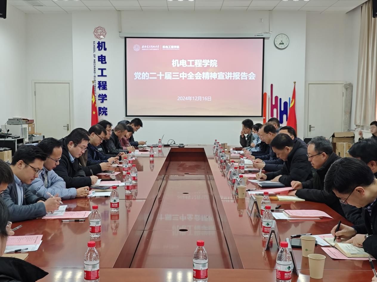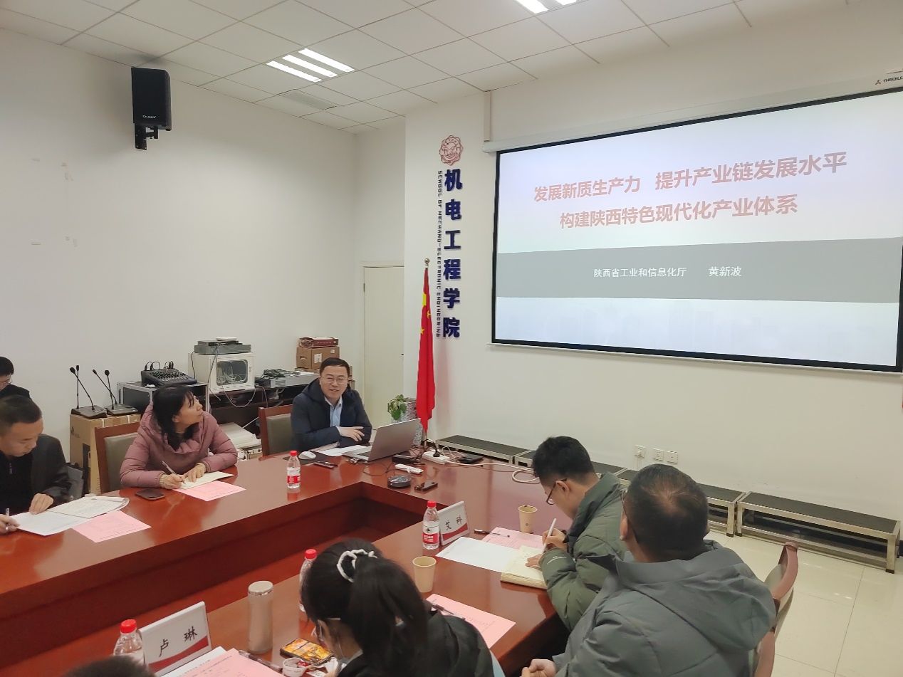 (通讯员 郭子钰 赵宇)为进一步学深悟透党的二十届三中全会精神,12月16日下午,yl23455永利集团在北校区主楼三区145北会议室举办党的二十届三中全会精神宣讲报告会,邀请陕西省工业和信息化厅副厅长黄新波到会讲授。校党委常委、副校长王泉,西安匠为智能科技有限公司董事长张敏,yl23455永利集团党政领导班子成员和学院师生代表参加了此次会议。会议由yl23455永利集团党委书记梁玮主持。