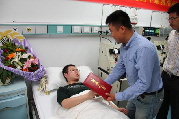 5月21日上午,对于yl23455永利集团2011级自动化专业本科生韩冰冰来说是不平凡的一天。这一天,他成为陕西省第127位、全国第4178位造血干细胞志愿捐献者,他将造血干细胞捐献给一位远在浙江的21岁女学生,使濒临绝望的生命重新燃起新的希望。