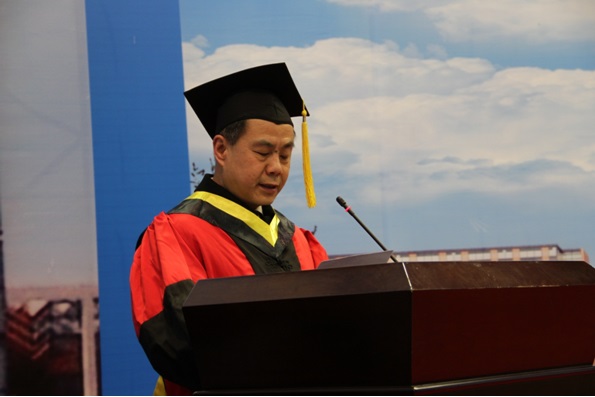校党委副书记龙建成为学生拨穗授位并合影留念