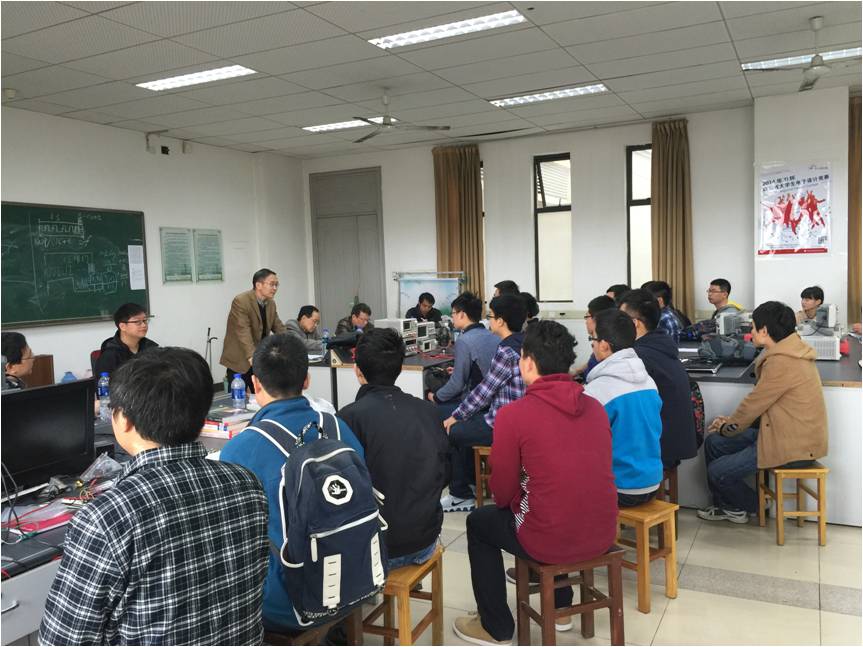 学院领导高度重视学科竞赛工作,制定了《yl23455永利集团关于教师指导学生参加各类竞赛的工作补贴、奖励办法》(试行),旨在进一步鼓励教师积极参与大学生科技竞赛组织、培训和指导工作,提高大学生参赛水平和科技创新能力。本次大赛成立了以博士生导师王海为组长,具有多年电赛指导经验的杨振江、王水平、赵明英等老师为核心成员的竞赛指导组,学院副院长李团结教授多次去竞赛训练场地指导工作,现场为学生解决困难。据教练组组长王海介绍,从2015年3月开始,经过笔试、面试层层选拔,我院共选拔出30位本科生进行单人单练,教练组先后组织模拟电路、电源电路、综合电路等多次培训,经过校内单人测试等环节,最终选出6支队伍共18人参加陕西工科五校TI杯校际联赛。此次成绩的取得离不开有效的竞赛管理与培训,离不开教练组的辛勤付出,离不开参赛队同学们的刻苦拼搏,向所有参与学院电赛工作的老师和同学表示祝贺。