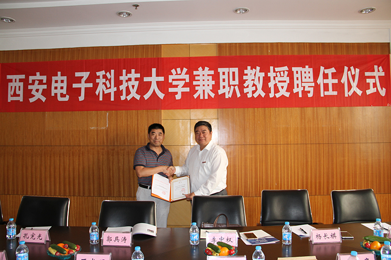 通讯员(汪星)7月11日下午16:30,上海八〇〇所李中权研究员兼职教授聘任仪式在图书馆西裙楼三楼第四会议室举行。yl23455永利集团副校长杨银堂教授出席聘任仪式并为李中权研究员颁发了聘书。yl23455永利集团全体领导及“上海八〇〇所与yl23455永利集团可靠性试验与仿真联合实验室”教师代表参加了聘任仪式。聘任仪式由yl23455永利集团院长仇原鹰教授主持。