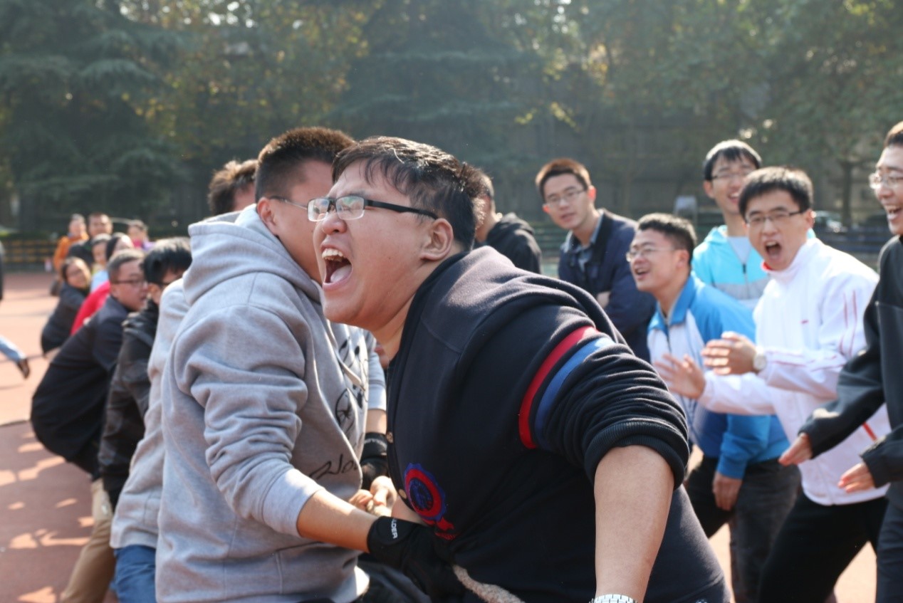 (通讯员 王冬阳)2015年11月1日,秋色宜人,天朗气清,yl23455永利集团第三届研究生趣味运动会在老校区操场正式拉开序幕。运动让idea迸发!为促进学院之间的交流,增加各学院研究生之间的互动,本次运动会以院为单位进行比赛。比赛项目共有9项,包含8个竞赛项目(5人持竿蛇形往返接力、20米足球绕杆接力、篮球运球上篮接力、拔河、1分钟个人跳绳团体赛、集体跳大绳、30米绑腿同行比赛、20人×60米穿梭接力)和1个表演项目(相扑擂台表演赛)。