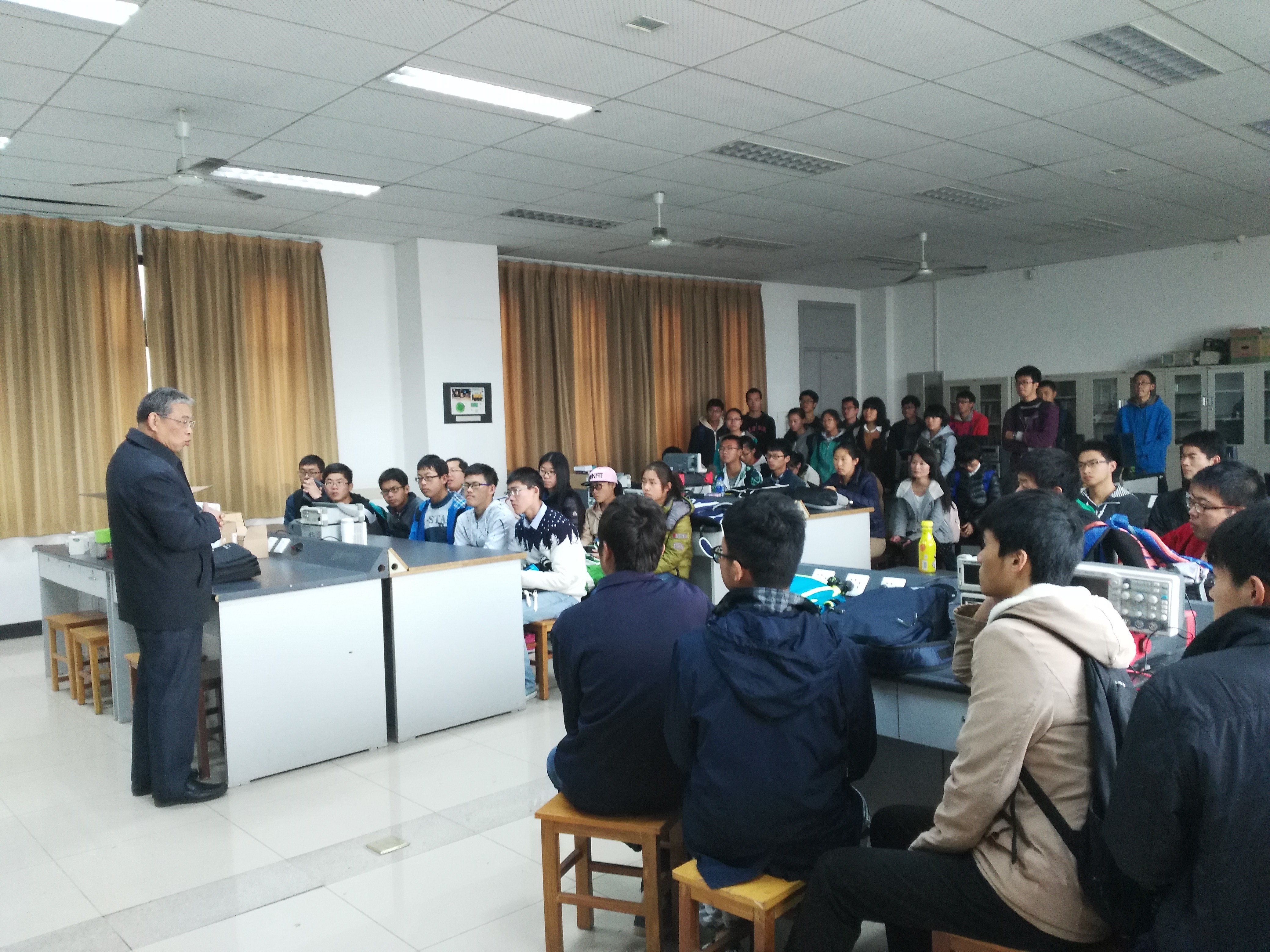赵建教授首先代表学院和测控工程与仪器系全体老师对“测控技术与仪器专业大学生科技实践团队”的成立表示热烈的祝贺,对积极参加科技实践团队的同学给予了充分的肯定和支持。并回顾了测控技术与仪器专业开展大学生科技实践活动的历史和取得的突出成绩,介绍了测控技术与仪器专业在学生科技实践活动中以老带新的传统和具体做法,分析了测控技术仪器专业的学科特点和人才培养优势,希望科技实践团队向着规范化方向发展,形成完善的管理制度和人员培养计划,使这支全学院乃至全学校第一个由本科四个年级学生共同组建的科技实践团队能越办越好,能够吸引更多的同学参加,形成良好的循环。要求大家努力钻研、勤学苦练、团结合作、充分发挥团队作用,在科技实践活动中不断提高自身的综合素质和实践能力,勇于创新,敢于实践,在大学生科技实践活动中取得丰硕的成果。为了表示对科技实践团队的支持,赵建教授代表测控工程与仪器系向科技实践团队赠送了自行研制开发的20套MSP430单片机实验系统,并表示今后还会陆续赠送多种不同类型嵌入式系统实验设备,使同学们能够受到更加全面的训练,掌握更先进的嵌入式系统应用技术。赵建老师的发言引起了同学们共鸣和反响,会议气氛热烈活跃。成立仪式结束后,不少同学还留下来就感兴趣的问题与赵老师进行了交流和咨询。