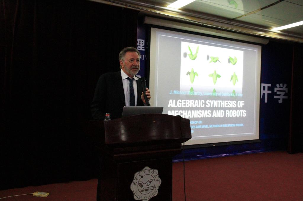 9月24日上午,McCarthy教授在北校区图书馆西裙楼三楼报告厅作了题为“Algebraic Synthesis of Mechanisms and Robots(机构与机器人的代数综合)”的精彩报告。