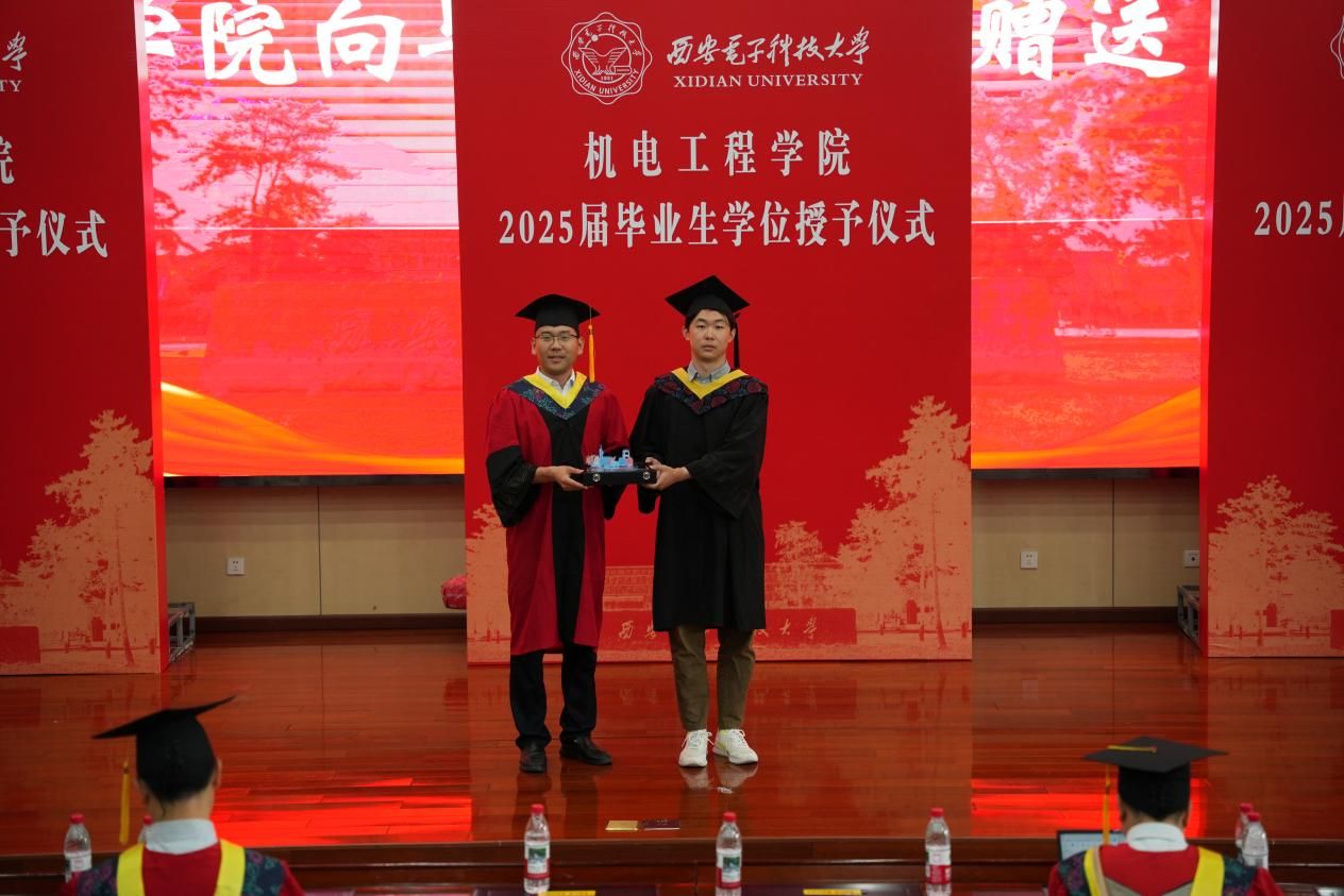 仪式最后,本科生和研究生毕业生代表上台向学院赠送纪念品,表达对学院的感恩与不舍;学院也向毕业生代表赠送由学院学生亲手设计的校园文创毕业礼物,寄托对毕业生们的祝福与期望。在温馨而庄重的氛围中,授位仪式圆满结束。