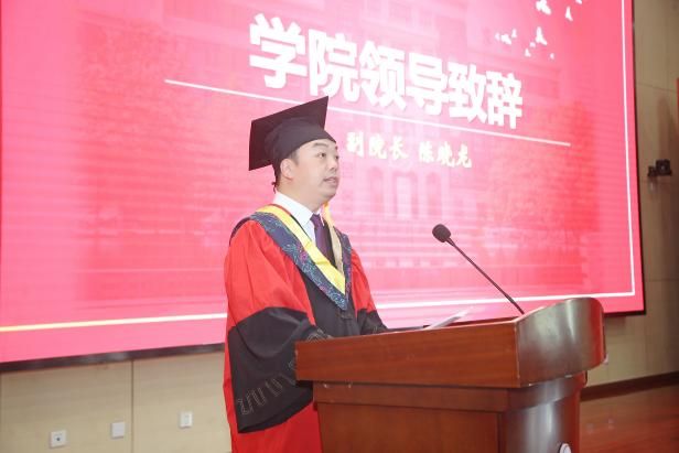 副院长陈晓龙代表学院向全体毕业生表达热烈祝贺与美好祝愿。他回顾了同学们在校期间的成长与收获,感慨于同学们从入学初的青涩懵懂到现在成熟沉稳的蜕变。他以“勇”字为纲,寄语毕业生“勇者不惧,履险如夷,永葆直面挑战的勇气;勇于进取,革故鼎新,秉持突破自我的果敢;勇往直前,矢志不渝,坚守使命担当的勇毅”。愿毕业生们在强国建设、民族复兴的火热实践中,以奋斗姿态书写绚丽的青春篇章。
