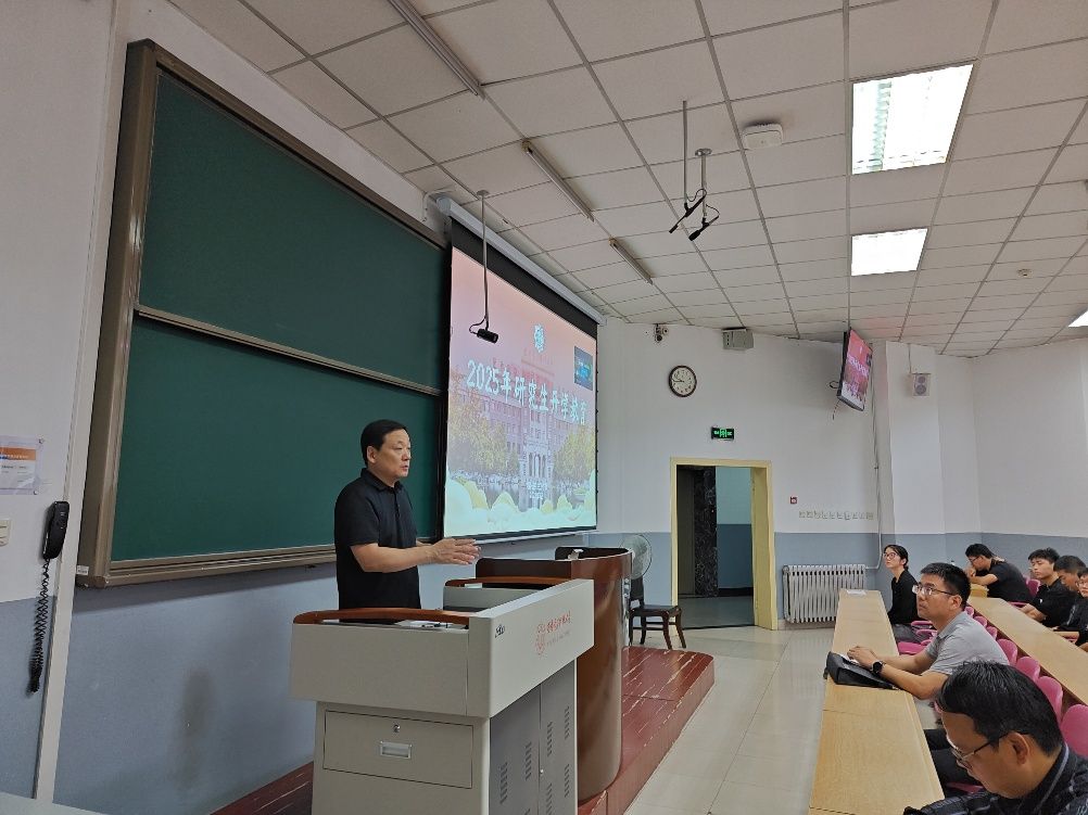 首先,訾斌代表学院对全体研究生新生的到来表示热烈欢迎,并就研究生阶段的学习与生活提出了殷切期望。訾院长提到,新的生活环境、管理模式、学习方式以及人际关系,都对同学们提出了更高要求。在做好学术科研之外,也要注重与导师和同学之间的沟通与协作,建立融洽的人际关系,为科研学习营造良好氛围。訾院长还介绍了今年学校的研究生招生总体情况,指出在校研究生规模与本科生接近,体现了学校高层次人才培养的持续发展。他鼓励同学们主动适应导师的指导风格,在日常互动中真诚相待、互相理解,若在学习与科研过程中遇到任何问题,可以及时与学院沟通反映。