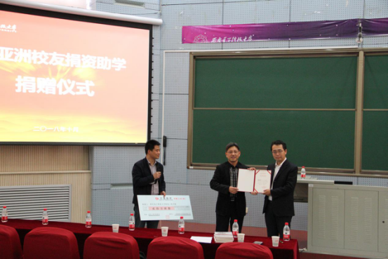 报告会前,学院举行了捐赠仪式,热忱感谢李亚洲校友捐赠20万元支持学院的建设发展。