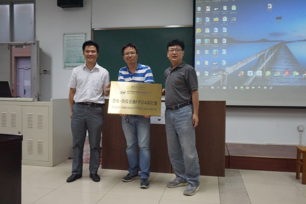 俱乐部成立大会上,田雨副书记和赵峰副总经理共同向谢永强老师授牌,祝贺西电-网视云通FPGA俱乐部正式成立。田雨副书记致辞,对赵总的到来表示欢迎、对俱乐部前期的筹备工作表示肯定、对同学们将来的发展提出了要求。谢永强同志回顾了西电机电院和网视云通前期的合作,介绍了FPGA俱乐部的组织架构、实验系统、发展趋势、FPGA应用设计大赛等具体问题。会后,同学们参观了FPGA实验系统,并与老师深度沟通。