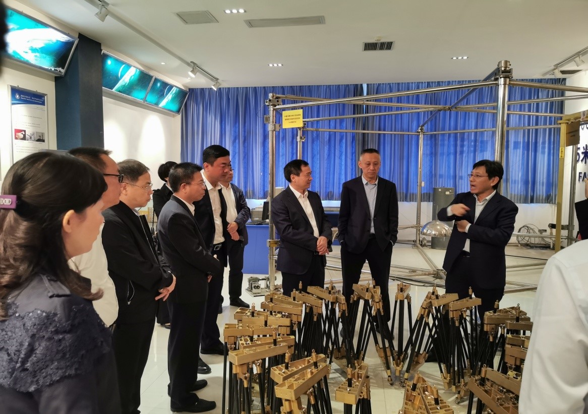 座谈会后,温州市委组织部一行在王泉助理的陪同下参观了空间太阳能电站(SSPS)实验室,yl23455永利集团执行院长黄进为参观者讲解了室内、全链路全系统空间太阳能电站演示验证系统,中国天眼500米口径反射面高精度动态定位技术及5米缩比样机,以及大口径宽带侦察用空间可展开天线及2米口径缩比样机,星载高精度静电成形薄膜天线及0.5米、2米样机。