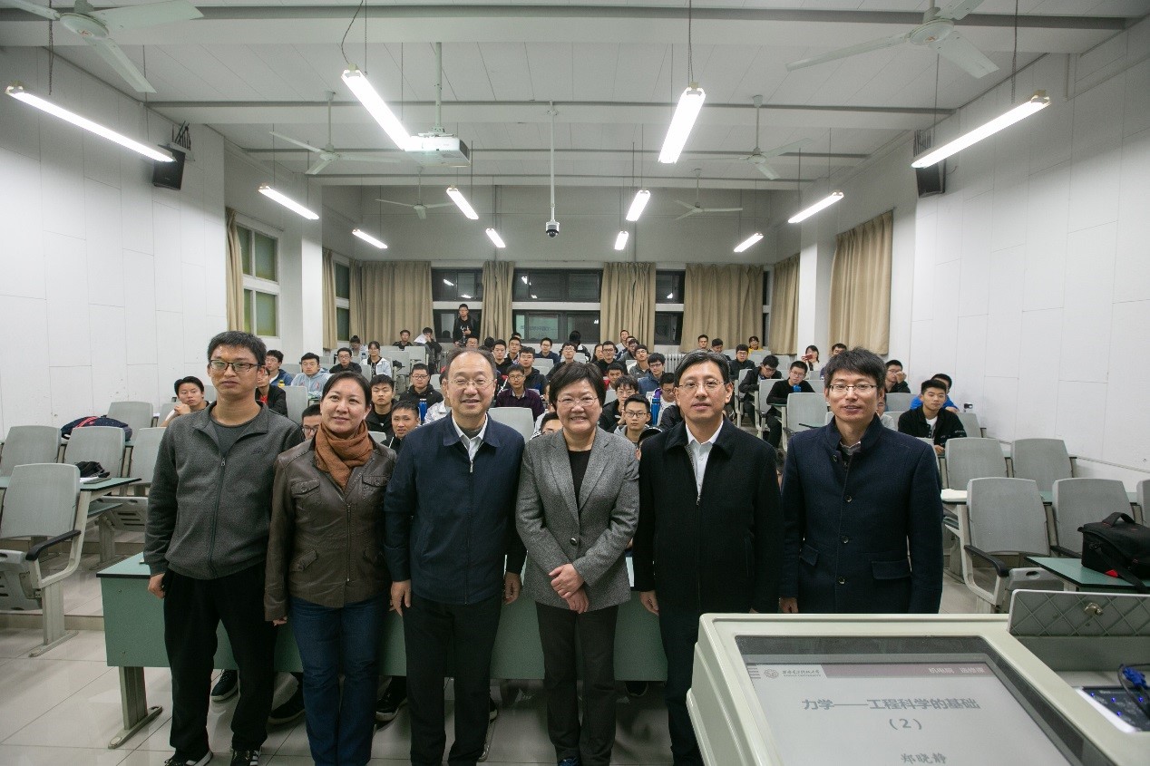 9月18日晚七点半,郑晓静院士与高伟教授第一次走进课堂,同学们自发的掌声经久不息。在介绍完授课教师和开设这门课程的目的后,郑院士开始了第一次授课,用生动而又通俗易懂地语言拉开了同学们期盼已久地学术盛宴的序幕,循序渐进的给出了《力学通识及前沿概论》这门课程的逻辑架构与内容:品味力学—力学发展历程、力学之美—力学在工程科学中不可替代的基础性和重要性、工程安全—计算不确定性力学、数据时代—人工智能与力学的融合、力学未来—力学与辅助设计手段和计算工程相结合、力学机遇和挑战—极端服役条件下的力学前沿问题等几个方面组成。郑院士的第一次课围绕着两个方面进行了展开,即“关于力学”和“力学与航空”。上课的同学们聚精会神,仔细听着每一个板块的内容,频频点头,互动环节同学们纷纷踊跃参与,课堂气氛热烈。郑院士在授课的过程中讲到历史、讲到祖国的发展,嘱托西电的学生能以开拓的眼界、旷阔的胸怀立大志、干大事,报效祖国。
