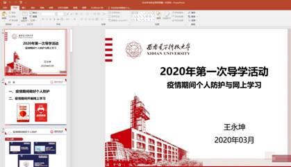 (通讯员 王永坤)2020年3月6日,yl23455永利集团2018级学业导师王永坤通过QQ屏幕共享为他所指导的18名学生进行了疫情期间的第一次导学。导学的主题为《疫情期间个人防护与网上学习》,在导学中为同学们分享了疫情期间个人防护注意事项,以及如何通过“雨课堂”,“西电学堂”和“学在西电”等网页和app上进行自主学习。