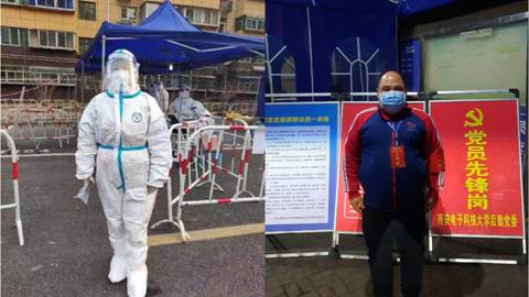 “目前北校区家属区疫情防控志愿者常态化设岗,社区北门及核酸检测处,仍需志愿者协助”,在北校区社区实行封闭式管理后,一条通知引起了学院教师张雪萍和崔明涛的注意。在收到志愿者招募的通知后,他们第一时间报名社区志愿者,崔明涛主动申请夜间值班,对进出社区人员进行查验和劝导,张雪萍负责核酸检测现场秩序维持工作,身穿防护服奋战在抗疫一线,为筑牢疫情防控阵地贡献机电力量。