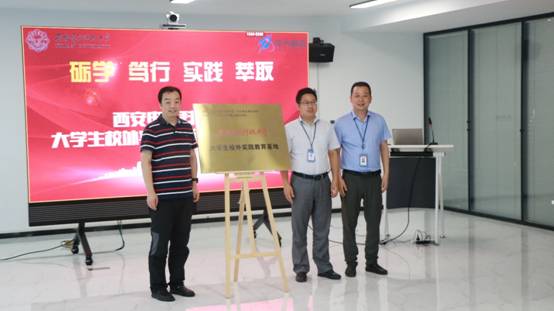 yl23455永利集团副院长陈晓龙与华天科技有限公司相关领导共同为“yl23455永利集团--大学生校外实践教育基地”揭牌。