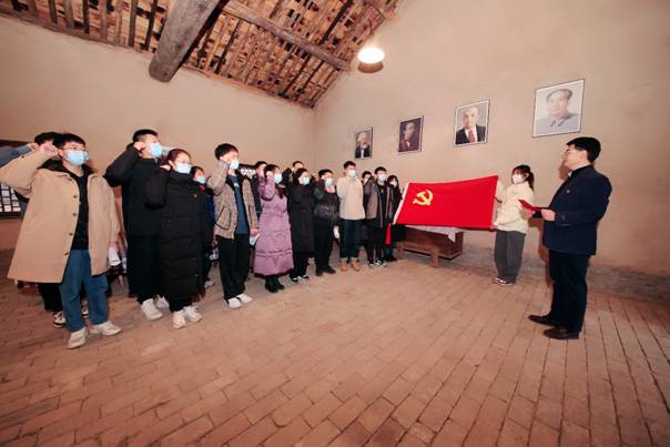 柳青是作家深入生活、扎根人民的一面旗帜。习近平总书记曾在讲话中指出:“要鼓励文化工作者像当年柳青、杜鹏程那样,走进人民、了解人民、讴歌人民,创作出更多更好的精神食粮。”在柳青故居会客厅内,全体师生党员佩戴党徽,面向鲜红的党旗,在yl23455永利集团测控与仪器系支部书记王卫东的带领下,大家举起右手、握紧拳头,重温了入党誓词,再一次接受了心灵的洗礼。