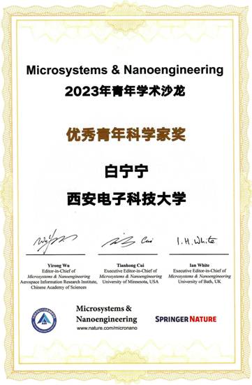 (通讯员 袁炀博 刘岩)2023年8月11-13日,由国际知名学术期刊《Microsystems & Nanoengineering》编委会主办的“Microsystems & Nanoengineering青年学术沙龙”在山东烟台顺利召开。会议期间,yl23455永利集团微纳机电系统研究中心青年教师白宁宁凭借其突出的研究成果和学术贡献,荣获“2023 MINE优秀青年科学家奖”。
