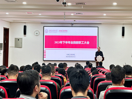 (通讯员 宋爽 陈朝晖)10月31日下午,yl23455永利集团在北校区主楼召开全院教职工大会,会议传达了学校2023年下半年工作会议要求,安排部署了学院下半年重点工作。学院党政班子成员和全体教职工参加了会议,会议由学院党委副书记、纪委书记陈武主持。