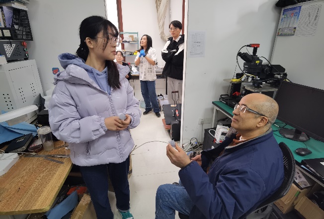 来访期间,Basaran教授参观了学院“微纳机电系统研究中心”实验室,与课题组研究生展开了亲切友好的讨论。Basaran教授详细了解了每位学生的研究方向,为同学们耐心解答了科研上遇到的困惑,同时鼓励大家能够继续深造,在电子封装领域开展更加深入的研究工作。