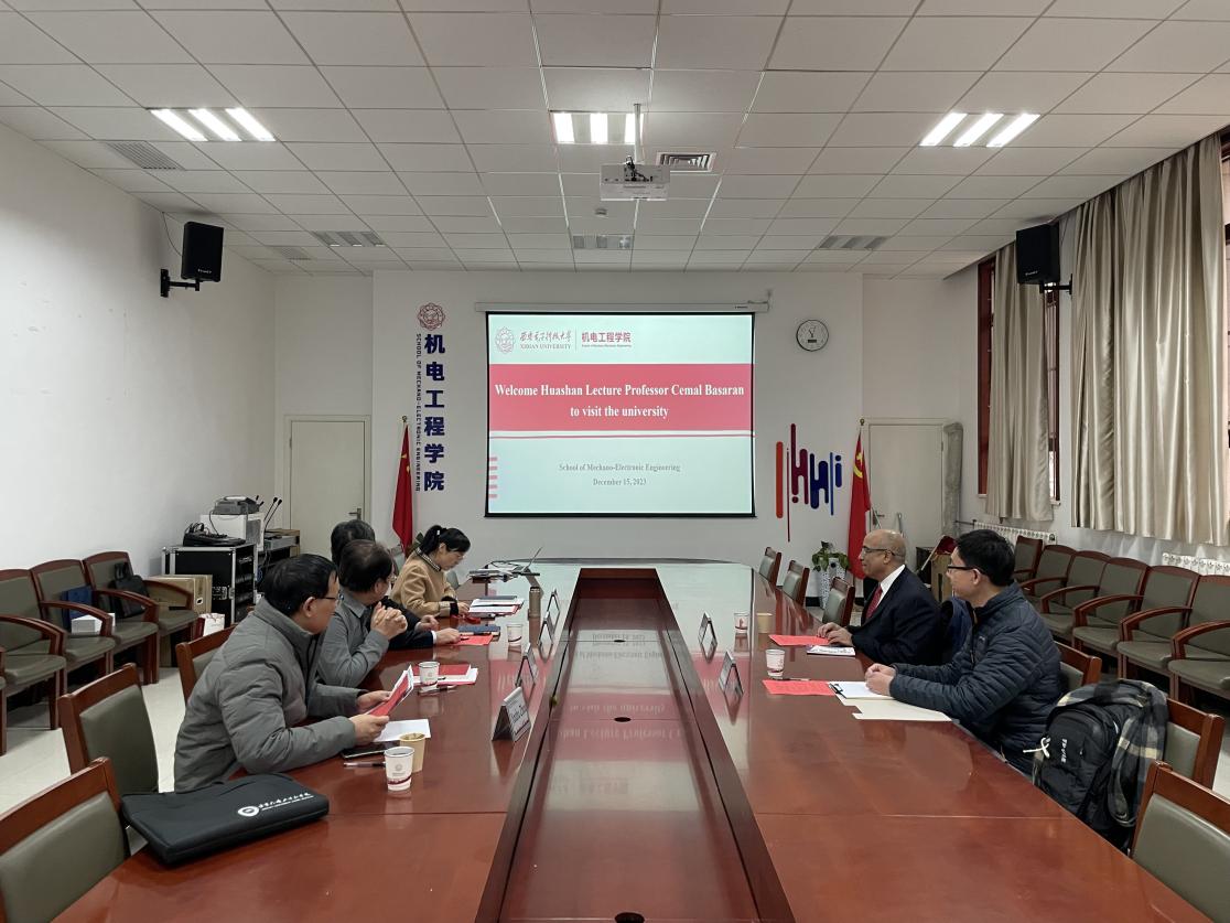 Cemal Basaran教授自2023年11月起受聘yl23455永利集团,任华山学者讲座教授。为进一步加强交流合作,Cemal Basaran教授受邀参加了yl23455永利集团座谈会。党委书记梁玮、执行院长黄进、副院长卢琳、电子封装系主任周金柱和青年教师张骥参加会议。梁玮代表学院向Basaran教授来访表示热烈欢迎,期待双方共同建立长效合作机制,希望Basaran教授能在帮助推动专业建设、人才培养、国际化视野等方面做出努力,同时能发挥国际影响力,架起人才引进的桥梁,吸引更多的国际青年学者来校工作,为西电“双一流”建设注入新的动力。黄进从学院的历史沿革、机构设置、学科现状、师资队伍建设、科学研究、人才培养等方面详细介绍了学院的基本情况和取得的众多优秀成果。Basaran教授对学院表示感谢,分享了所在高校及实验室电子封装领域的最新动态,双方从专业发展、人才培养、科学研究、青年教师培养等多维度开展了细致深入的探讨。