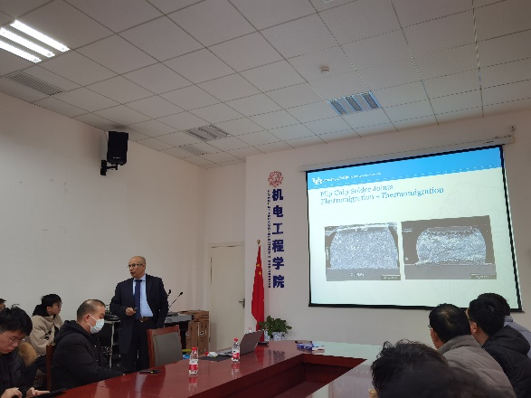 12月18日下午,Basaran教授在北校区主楼三区为yl23455永利集团师生作了题为“Unified Mechanics Theory and Its Application in Degradation Mechanism Analysis of Electronics Packaging”的华山领航报告,重点介绍了封装焊点结构中的失效分析方法。合作团队负责人王卫东教授主持报告和后续交流环节。与会师生对Basaran教授的研究内容展现出浓厚的兴趣,进行了深入的交流研讨。报告结束后,中国工程院院士段宝岩在科技楼会见了Basaran教授,对后续电子封装学科的合作交流表示期待。