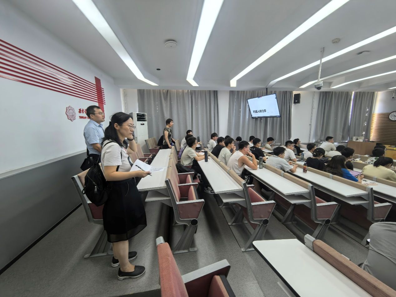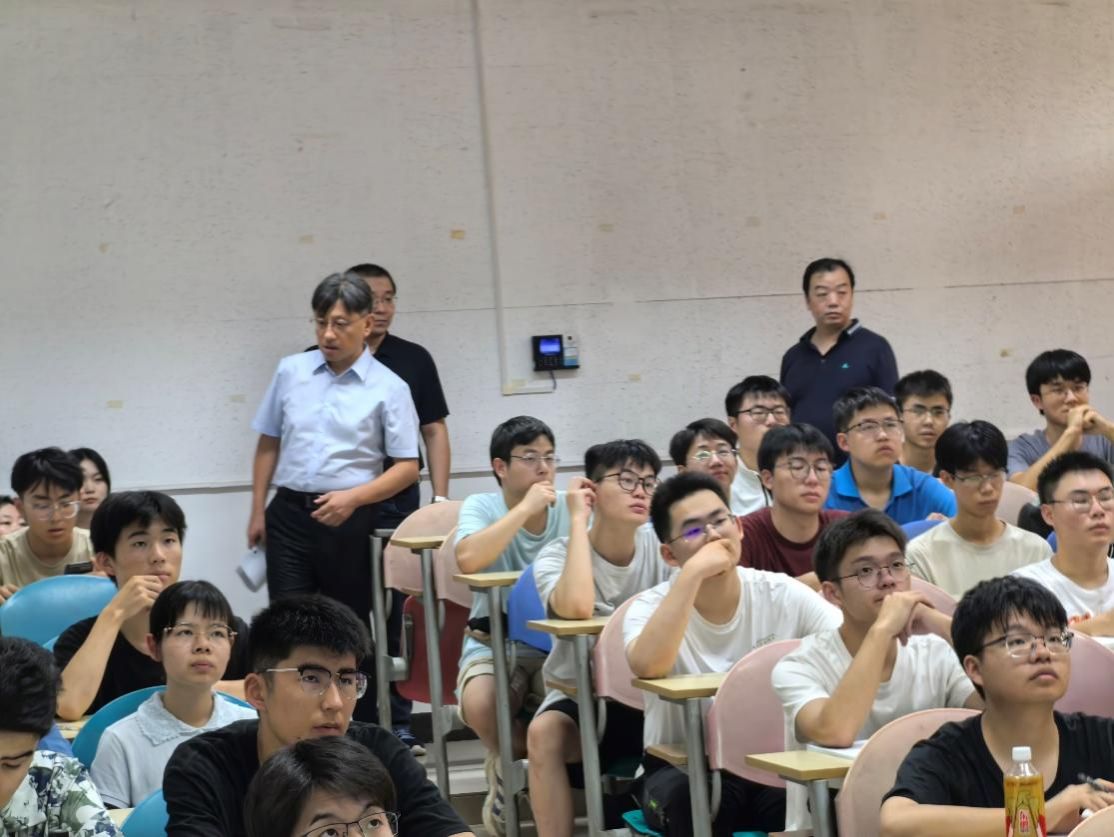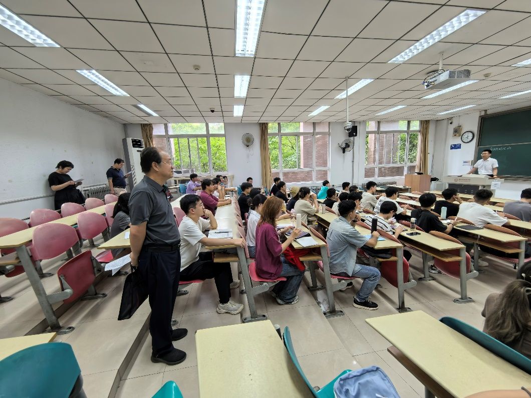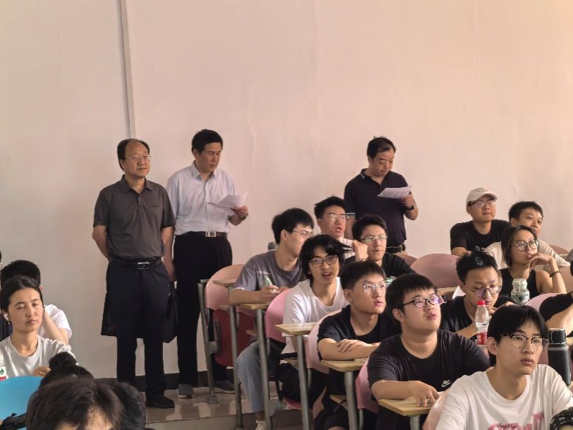 (通讯员 王飞)新学期开学之际,为提升本科教学质量,严明学生课堂纪律,建设优良学风作风,引导学生养成良好的学习习惯,营造严谨治学、奋力勤学的学习氛围,2024年9月2日至9月6日,yl23455永利集团开展为期一周的开学本科教学检查活动。9月2日上午,由yl23455永利集团分党委书记梁玮、执行院长黄进带队,教学副院长陈晓龙及学院其他领导、督导、各系主任、支部书记、本科教学办公室人员及相关年级辅导员参与组成检查组,对开学第一课的教学秩序进行检查。