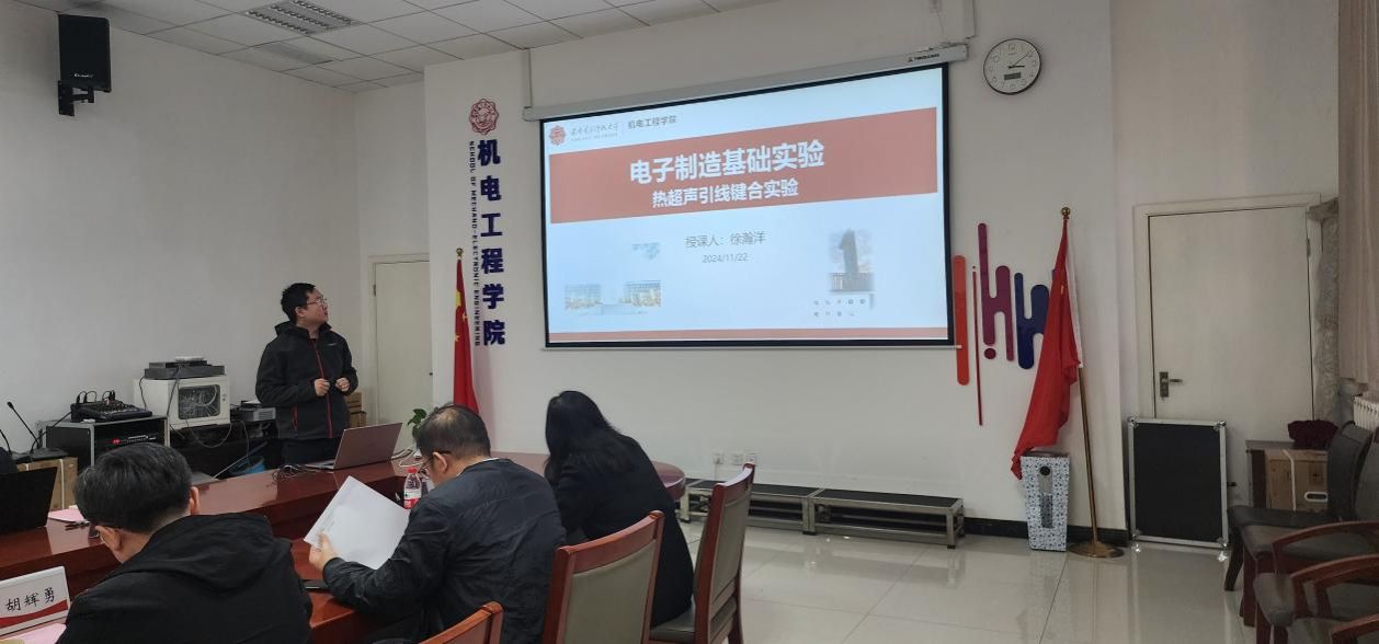 会议还围绕教学设计与方法以及如何合理增加课程思政内容展开了交流。随后,学院三位青年教师徐瀚洋、侯高旸和李兵分别进行了试讲,教学内容包括电子制造基础实验、自动控制原理实验和集成运算放大器等课程。他们精心设计的教学内容和课堂呈现充分展示了各自的教学思路和方法创新。专家们对试讲进行了细致点评,提出了切实可行的改进建议,例如加强实验原理与理论知识的结合、增加合理的课程思政环节,通过动画和字幕以增强课堂吸引力,以及引入实物演示和实验创新点等。