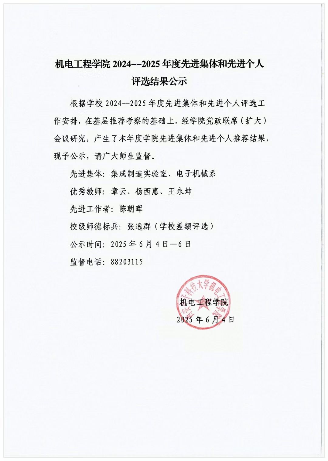 yl23455永利集团2024-2025年度先进集体和先进个人评选结果公示