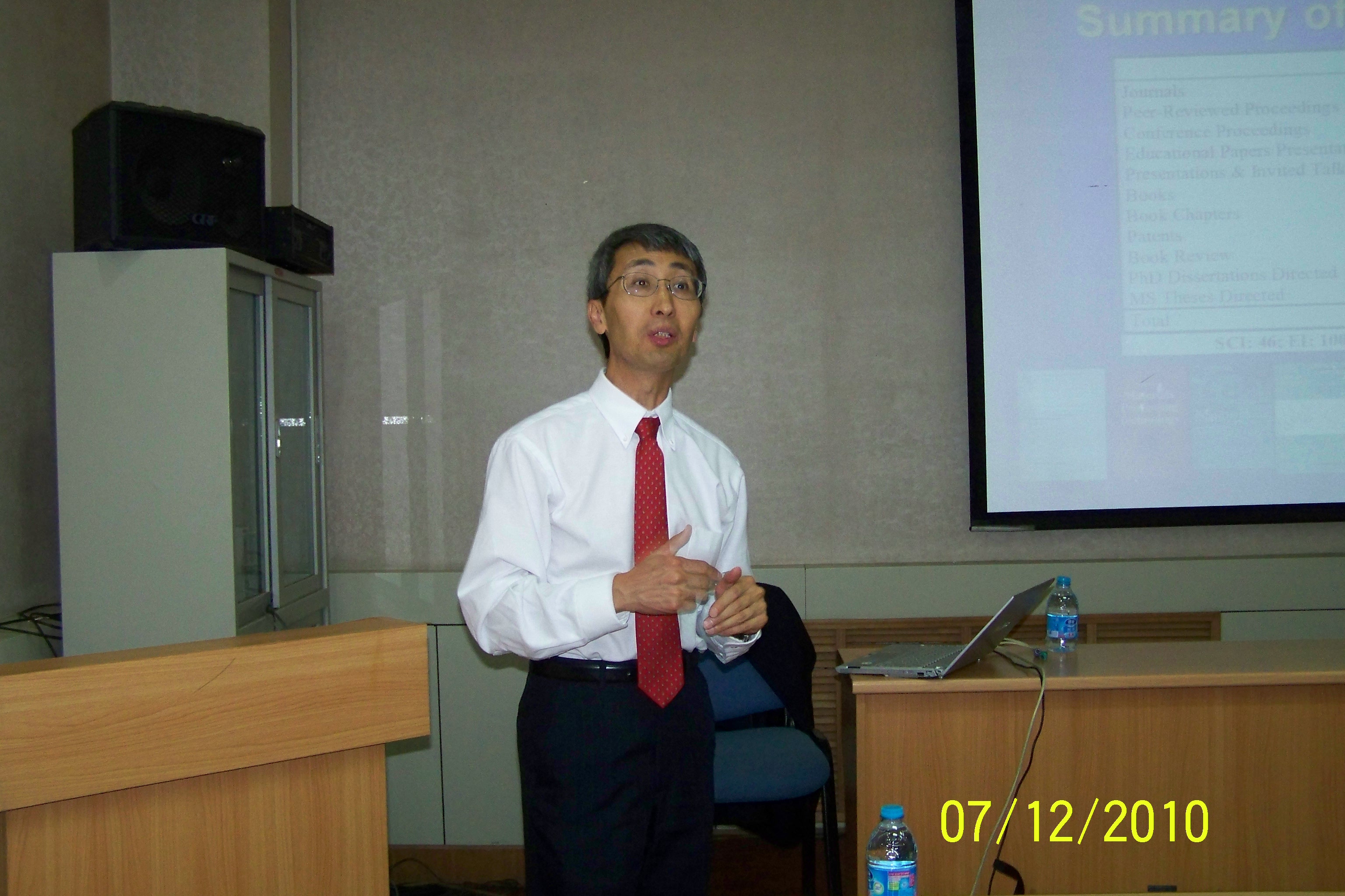 应yl23455永利集团仇原鹰教授邀请,美国萨斯州立大学裴志坚教授于2010年7月11日至15日来我校讲学,并作了题为“Writing high-quality journal papers”的学术报告。报告会由yl23455永利集团仇原鹰教授主持,yl23455永利集团部分青年教师和博士生聆听了讲座。在报告中,裴志坚教授介绍了自己多年来撰写科研论文的经验,以及近年来在国外的研究成果、研究中使用的新方法、新技术,与到会师生分享了他培养研究生、博士生的独特方法。报告深入浅出,形式活泼、气氛十分热烈。此次裴教授来访是继去年来访之后第二次访问我校,通过这两次的来访,裴教授深入了解了我校的科研实力与学术地位,双方建立了良好的合作关系,今后将进一步在科研与人才培养方面与我校合作。