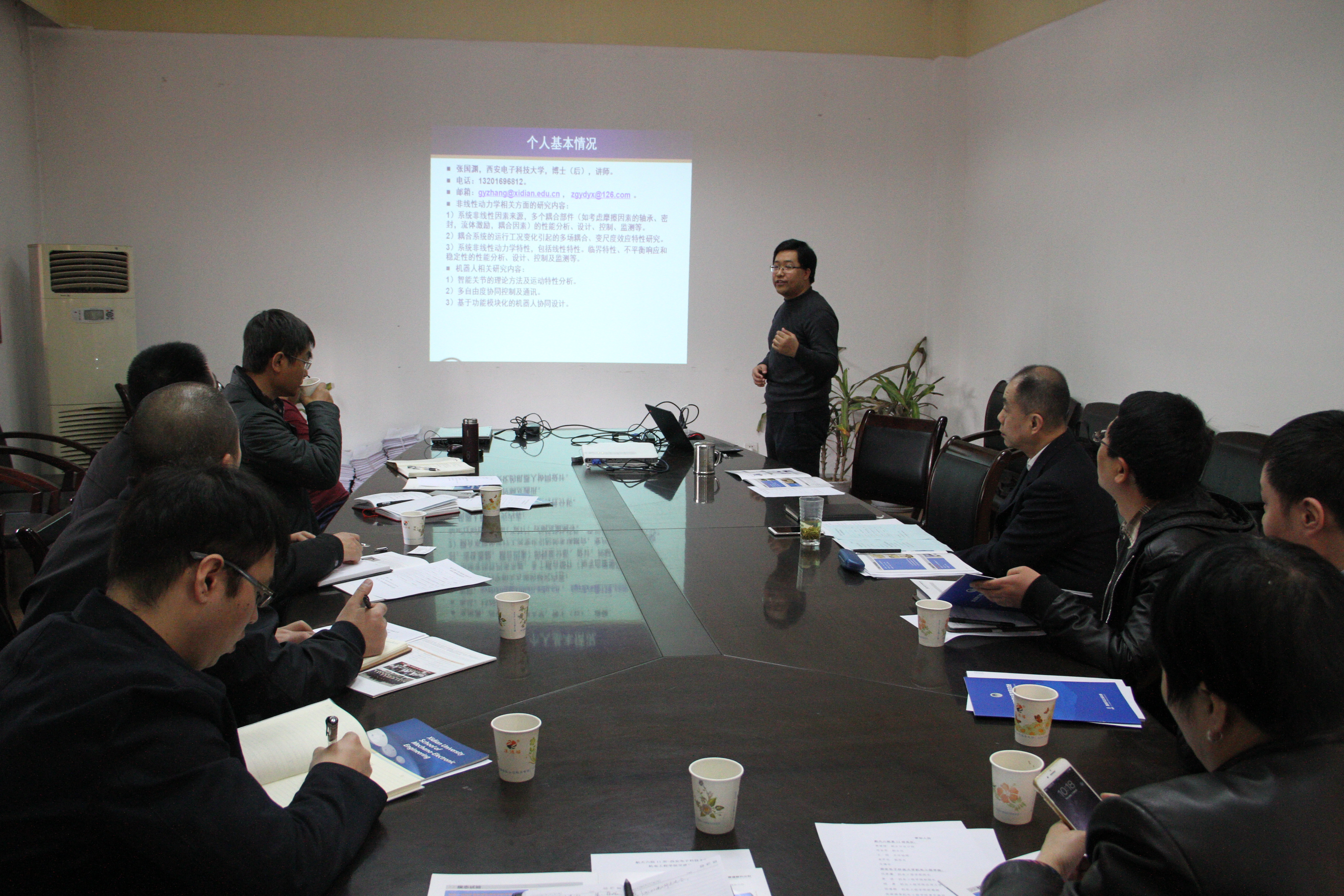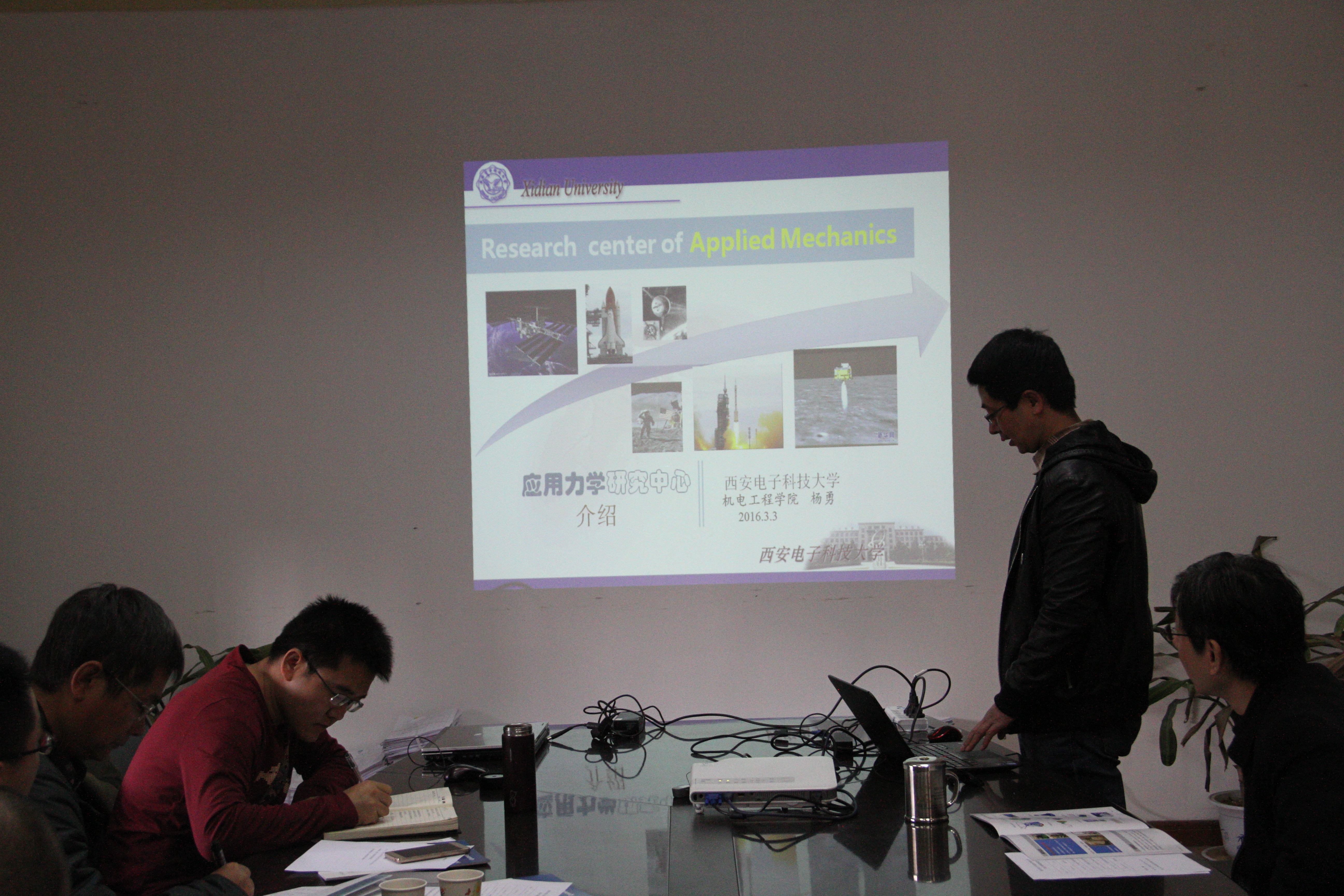 杨勇副教授介绍了学院应用力学研究中心人员组成、研究方向及取得进展。张国渊和郭空明两位老师分别结合航天六院第11研究所的技术需求介绍了本人的研究成果。