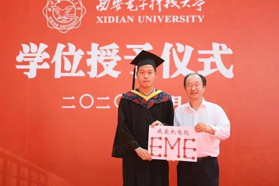根据上午2020级本科毕业生座谈会李智强同学提出的想留一枚代表学校的校徽,来纪念自己在西电的四年学习生涯,学院决定为大家每人准备一个校徽纪念品,同时对于同学们想常回母校表示热烈欢迎,并鼓励同学自己设计毕业纪念品。授位仪式上梁玮代表学院,将李智强同学设计的带有机电院英文简写EME和“我爱机电院”的校徽赠于学生代表,希望同学们以后有机会常回家看看。