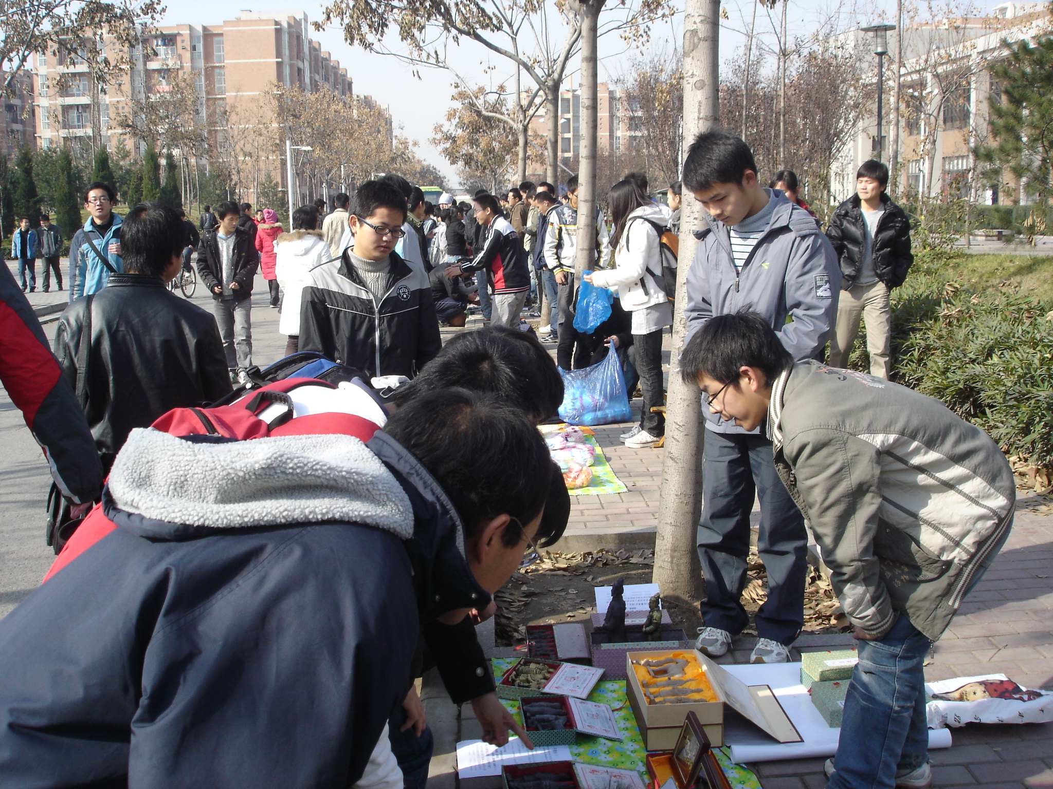 在12月5号和6号的“跳蚤”市场如期举行,在5号的开始阶段大家纷纷摆出摊位,展示自己需要交换的物品。经过一段时间后,越来越多的人知道此次活动,路过的同学对这个活动充满了好奇和热情,有很多同学积极要求摆摊、交换、购买,活动现场挤满了各个年级的同学们。特别是在5号和6号中午大家去海棠餐厅吃饭的时候,由于活动是在海棠餐厅附近,每个摊子前面都挤满了人,很多人都是十分满意的淘到自己喜爱的东西。