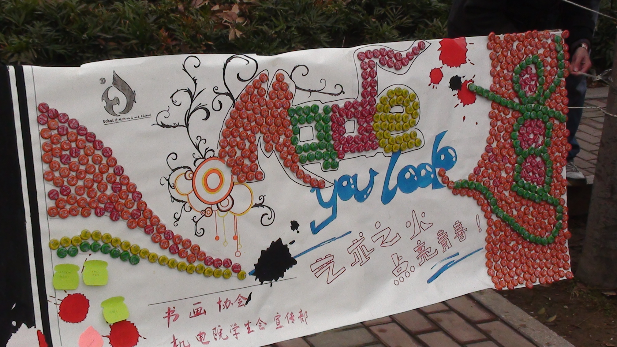 这次活动旨在丰富同学们课余生活,为广大的学生在忙碌的学习之余创造一个属于艺术的天地。艺术对于人们的陶冶是其他很多所不能比拟的。为此机电院学生会组织了“made you look 文化艺术展 ”。