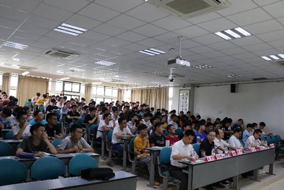 随后学院副院长王从思教授就学院的科研技术做了系统的阐述。他讲到了四个“现在”与一个“未来”:四个“现在”包括现阶段机电院所研究的领域——偏电力;现阶段科研的重大贡献——FAST的结构力学设计、牵引运动的动力学控制以及远距离高精度的测量等;现阶段毕业学子的就业前景广阔以及交流平台丰富性。一个“未来”即为对未来的展望,王院长通过对学院相关科研技术及研发成果的讲述,成功引起了同学们对科技探索的兴趣,让广大学子充满了学习的动力。