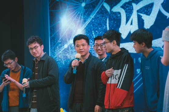 晚会特意设置了游戏环节,台下观众踊跃参加,田雨也积极地参与其中,大家一起进行了一场妙趣横生的听歌识曲大赛。他与台上同学积极互动,展示出了机电院老师与同学亲切良好的师生关系,现场师生一起合唱了《我和我的祖国》,将晚会的气氛推入高潮。