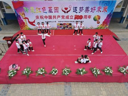 (通讯员 卢嘉润 何思源)6月25日,为庆祝中国共产党建党一百周年,深化以党史学习为主线的“四史”教育,进一步引导当代学生在实践中感悟初心使命,助力乡村振兴,发挥志愿服务精神,yl23455永利集团经过前期多次的沟通交流,由yl23455永利集团团委书记王维佳带领学生前往蒲城,参加由yl23455永利集团和龙池镇中心小学共同举办庆祝中国共产党成立100周年文艺演出活动。