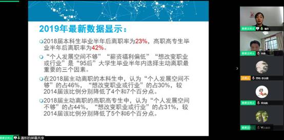 王瑾及其同事何川向同学们介绍了均胜集团的业务范围、工业产品以及生产工艺等。同学们跟随着摄像头参观了办公环境与产品展柜,身临其境地领略了这家企业的魅力所在。同时,均胜集团也向参会的学生发出邀请,期待同学们的加入。