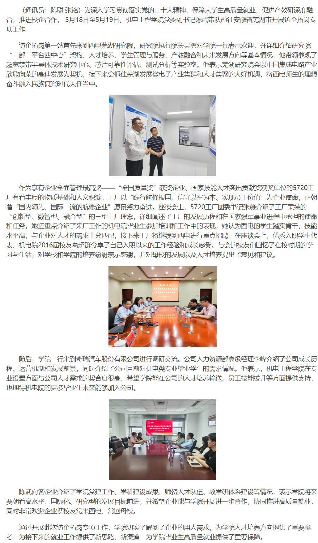 yl23455永利集团赴芜湖开展访企拓岗专项工作