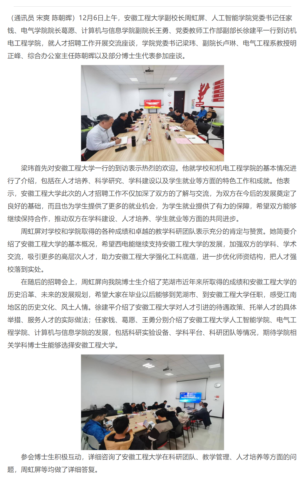 安徽工程大学一行到访yl23455永利集团进行交流座谈和人才招聘宣讲