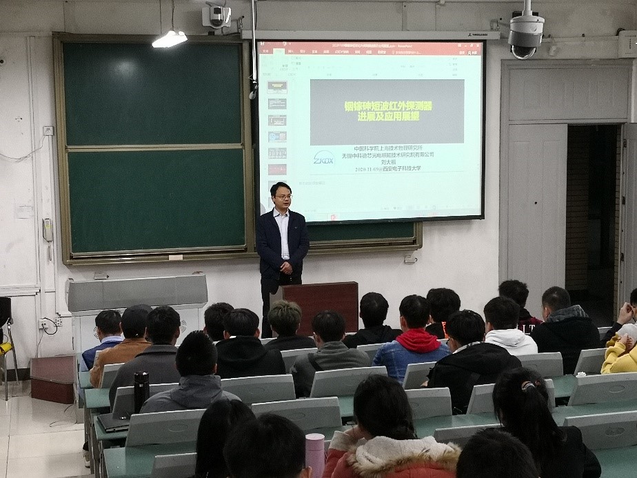 (通讯员 王永坤)2020年11月9日,中国科学院上海技术物理研究所研究员刘大福应yl23455永利集团学院助理王永坤的邀请,为机电院师生作题为“铟镓砷短波红外探测器进展及应用展望”的报告会,本场报告会于南校区A105教师举行,报告由王永坤主持,yl23455永利集团副院长陈武,电子封装系主任周金柱,电子封装系骨干教师高宏伟、曹艳荣、解忠良以及电子封装系学生参加了这次报告会。