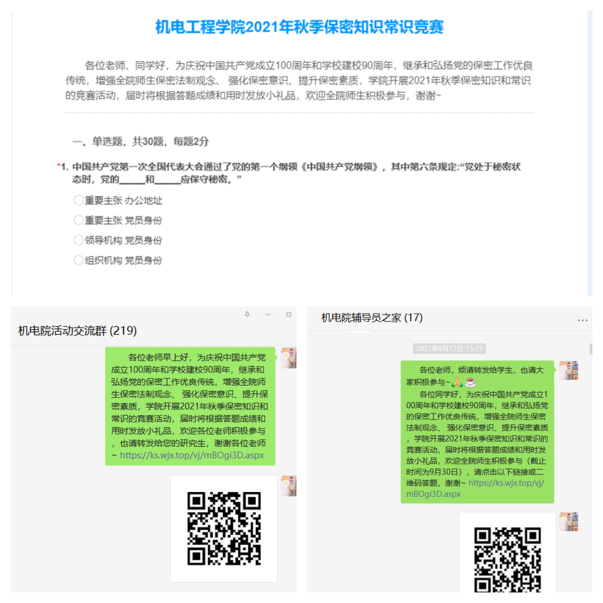 (通讯员:石贵利)为庆祝中国共产党成立100周年和学校建校90周年,继承和弘扬党的保密工作优良传统,同时激发全院师生保密知识学习兴趣,增强保密意识,营造和谐保密文化氛围,yl23455永利集团于9月中下旬开展了2021年秋季保密知识和常识竞赛答题活动,通过微信群、学院电子屏等多种方式动员全院教师和研究生积极参与。