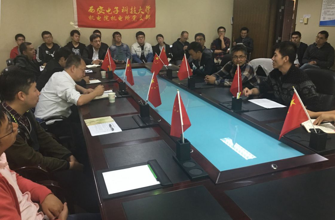 西电新闻网讯(通讯员 赵宇 曾子杰)10月11日晚,yl23455永利集团于北校区新科技楼8楼802会议室召开座谈会,听取机电所党支部书记张逸群讲党课,宣布学生纵向支部成立事宜,进一步了解学院各党支部建设情况,同时就学院工作开展调查研究及意见反馈工作。会议由学院党委书记梁玮主持,执行院长黄进、校“不忘初心、牢记使命”主题教育巡回指导小组第一组成员张维宁、学院全体教职工党支部书记、机电所党支部党员、研究生纵向党支部支委委员及辅导员周蕾、党务干事赵宇参加了会议。